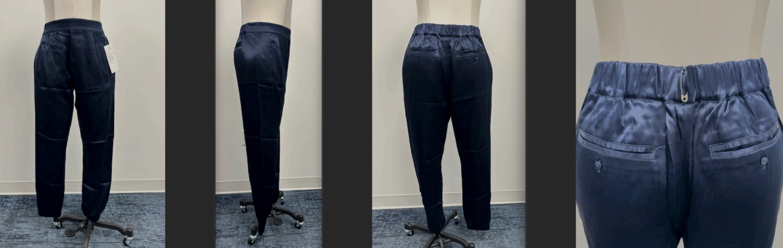 -Radcliffe Satin Jogger- 170 GSM, 55% Viscose 45% Rayon Satin in 19-3921 TCX “Black Iris” 1st Proto Fitting Pre-Production Fitting *Final Photos Pending Launch in October, 2025